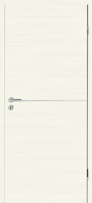 Eurowood CPL-Tür Pinie Weiss quer Röhrenspan Vollbau, 1 Lisene silber - rechts