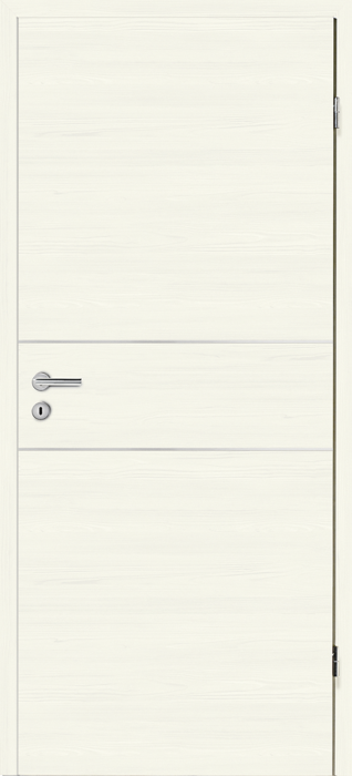 Eurowood CPL-Tür Pinie Weiss quer Röhrenspan Vollbau, 2 Lisenen silber - rechts