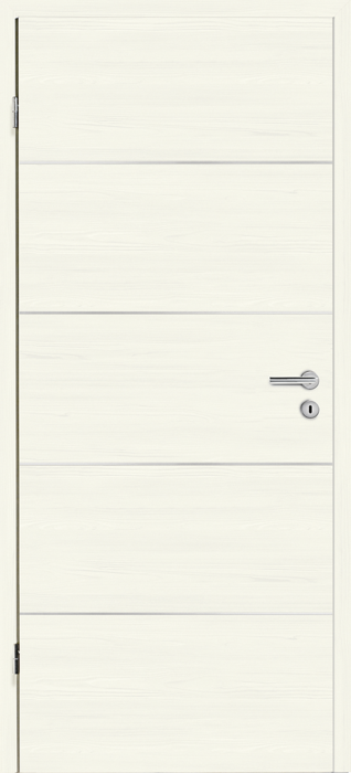 Eurowood CPL-Tür Pinie Weiss quer Röhrenspan Vollbau, 4 Lisenen silber - links