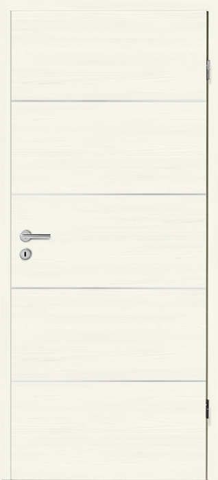 Eurowood CPL-Tür Pinie Weiss quer Röhrenspan Vollbau, 4 Lisenen silber - rechts