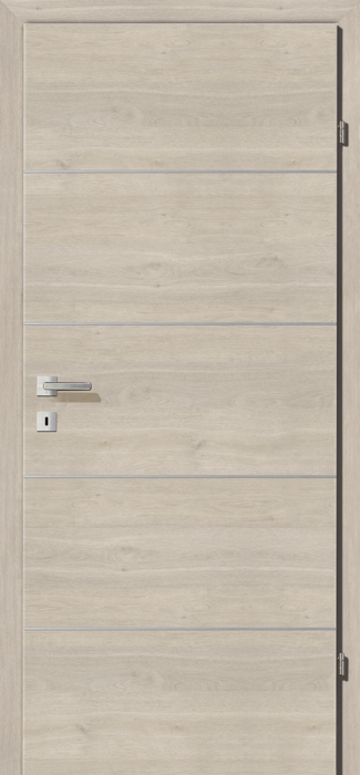 Eurowood CPL-Tür Wüsten Eiche quer Röhrenspan Vollbau, 4 Lisenen silber - rechts