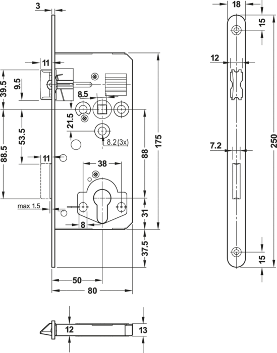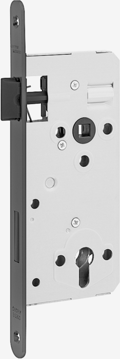 Häfele Einstemmschloss ergo PZ für Drehtüren, Rundstülp, links/rechts, schwarz matt 911.55.671