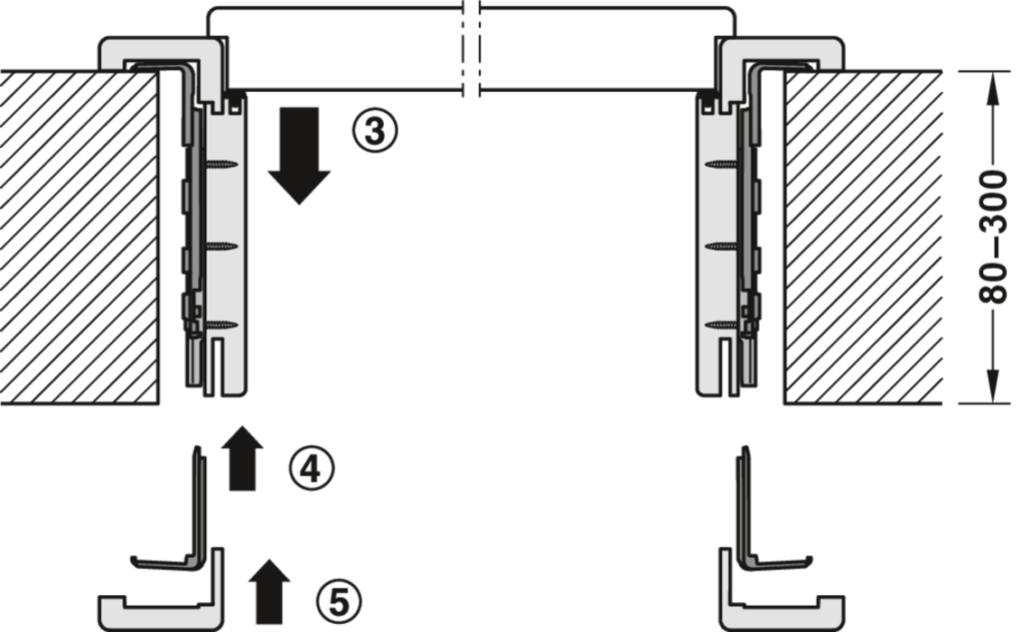 Einsatzbereich: Klemmmechanismus für Holzumfassungszargen im Innenbereich, Montage in druckfesten Laibungen aus Mauerwerk, Putz, Beton, Holz, Gipskartonplatten und Fliesen (mit Fliesenschutzprofil)