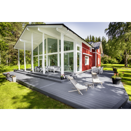 UPM ProFi Deck ist das innovative Terrassenprogramm von UPM. Dank strapazierfähiger Oberfläche, dauerhafter Farben und Formstabilität eignet sich UPM ProFi Deck ideal für Gartenterrassen sowie für Restaurants und Poolumrandungen. Die beidseitig profilierten Terrassendielen sehen über Jahre erstklassig aus, während sich der Pflegeaufwand auf ein Minimum beschränkt. Das Verbundmaterial ist beinahe frei von Lignin, dem Holzmolekül, das für die Vergrauung verantwortlich ist. Die steinartige Oberfläche von UPM ProFi Deck ist nicht porös, Flüssigkeiten wie Wein und Öl können einfach abgewischt werden. Bei UPM ProFi Deck besteht keine Gefahr, sich an Schiefern oder Splittern zu verletzen.