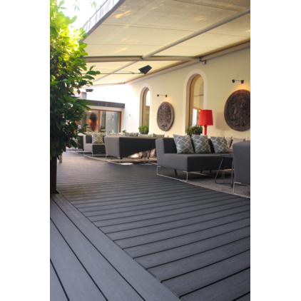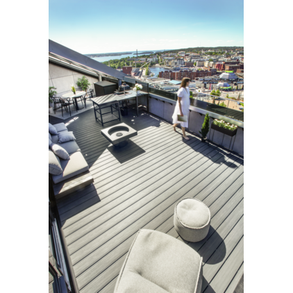 UPM ProFi Piazza One sind WPC-Terrassendielen, die nicht nur dank langanhaltender optischer Eleganz überzeugen, sondern auch starke Nachhaltigkeitsakzente setzen. Der Hartholz-Stil von UPM ProFi Piazza One verleiht den Dielen ein ganz besonders natürliches Erscheinungsbild. Die Dielen kommen ausschließlich im privaten Bereich zum Einsatz und sind in sieben verschiedenen Farbtönen erhältlich. Das verleiht ihnen eine besonders hohe Anpassungsfähigkeit an unterschiedliche außenraumgestalterische Anforderungen.